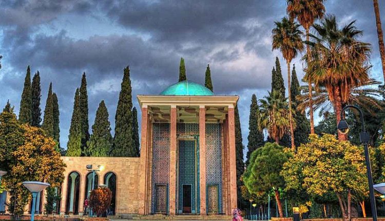 در بخش شمال شرقی شهر شیراز اگر به سمت باغ دلگشا برویم به آرامگاه این شاعر بزرگ خواهیم رسید. هرچند که در این مجموعه افراد دیگری چون شوریده شیرازی، شیخ مشرف الدین و چند نفر دیگر نیز بنا به وصیت خود دفن شده‌اند. درباره محل فعلی مقبره سعدی گفته می‌شود که در سال‌هایی که به شیراز آمده، تا زمان فوتش در همین مکان به عنوان خانقاه استفاده می‌کرده و هنگام مردنش در همین‌جا دفن شده است. اولین بنای ساخته شده روی قبر او در زمان حکومت اقاباجان توسط وزیر مشهورش شیخ صاحب دیوانی در حدود قرن ۷ ساخته شده است. هرچند که متأسفانه این بنا دوامی نیاورد و در قرن ۹ یعقوب ذوالقدر که حاکم فارس بود آن را با خاک یکسان کرد. اما ارادت به مقام سعدی آن‌قدر بالا بود که دوباره در سال ۱۱۸۷ کریم‌خان زند در ادامه تحولات اساسی‌اش در شیراز دستور داد تا آرامگاه منابی برای این شاعر نامدار ساخته شود تا جایگاه و شان وی دوباره حفظ شود.