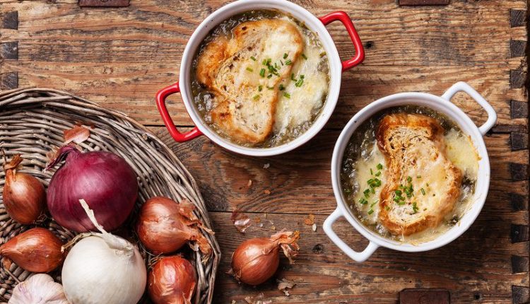 سوپ پیاز (Soupe à l’oignon) یک غذای سنتی فرانسوی به شمار میرود که معمولاً با ورقه های نازک نان برشته شده و پنیر آب شده روی آن سرو میشود. منشأ این سوپ به رم باز میگردد که در آن زمان غذای فقیرانهای به حساب میآمد، اگر چه نسخه فعلی آن از قرن ۱۸ قدمت دارد. سوپ پیاز فرانسوی از پیاز و مایه گوشت گاو تهیه میشود و طعم و مزهی قابل توجه آن به دلیل کارامِلیزه شدن پیاز است. گاهی اوقات در پایان فرآیند پخت، Brandy (نوعی نوشیدنی) به آهستگی به آن اضافه میشود. به طور معمول در سوپ پیاز از مایع مایه گوشت استفاده میشود و بعضی برای غلیظ کردن آن از تخم مرغ یا آرد نیز استفاده میکنند.
