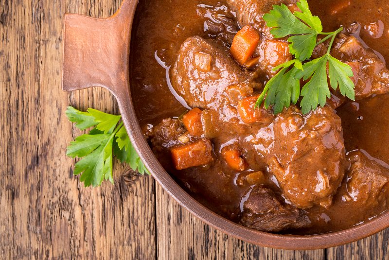 بوف بورگونیون (Boeuf bourguignon) غذای سنتی فرانسوی به حساب میآید و در سطح بین المللی شناخته شده است. منشاء آن همان منطقهای است که «کوک او ون» از آنجا میآید. این غذا، خوراکی تهیه شده از گوشت گاو پخته، آبگوشت گوشت گاوِ چاشنیدار شده با سیر، پیازهای مرواریدی، سبزیهای تازه و قارچ است. این دستور فقط یکی از نمونههای نحوهی تهیه این خوراک سنتی و روستایی است. زمان آمادهسازی سنتی بوف بورگونیون دو روز است تا گوشت، تُرد شده و خوراک، خوش طعمتر شود. این غذا در جشن ماه آگوست در Burgundy سرو میشود.