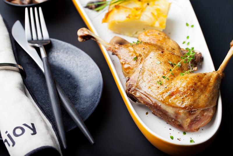 «کونفی دو کانار» (Confit de canard) یک غذای فرانسوی خوشمزه از اردک است (اگرچه از گوشت غاز و … نیز میتواند استفاده کرد) و به عنوان یکی از بهترین غذاهای فرانسوی در نظر گرفته میشود. گوشت بهطور ویژه با استفاده از یک فرآیند پخت آهسته (که صدها سال است قدمت دارد) آماده میشود. در این فرآیند گوشت اردک تا ۳۶ ساعت در نمک، سیر و آویشن خوابانده میشود و سپس به صورت آهسته در روغن خودش و در دمای پایین پخته میشود. سیب زمینی برشته شدهی کانفیت و سیر معمولاً در کنار این غذا سرو میشود. امروزه این غذای فرانسوی در سراسر فرانسه طبخ میشود اما به صورت تخصصی باید در منطقهی جنوب غربی فرانسه (Gascony) این غذا را میل کنید.